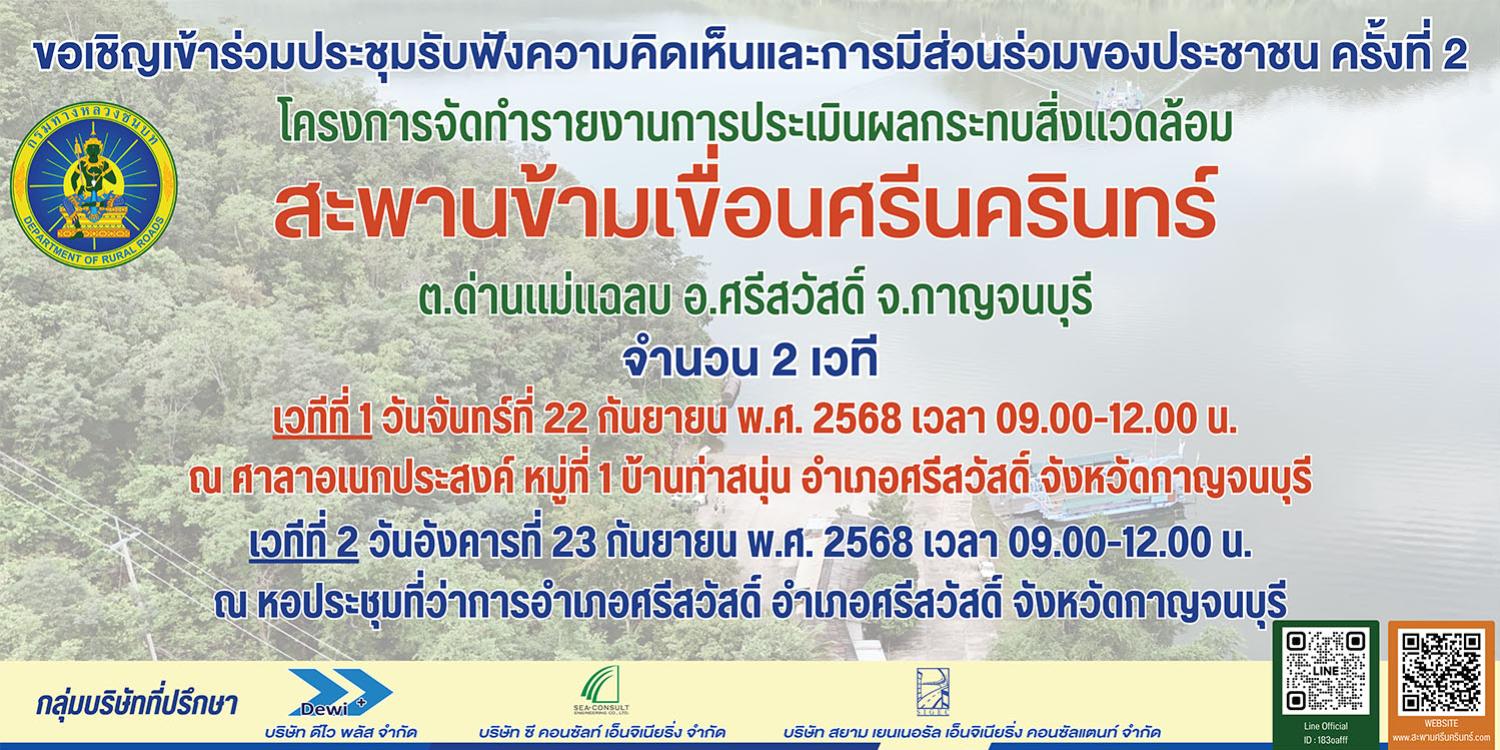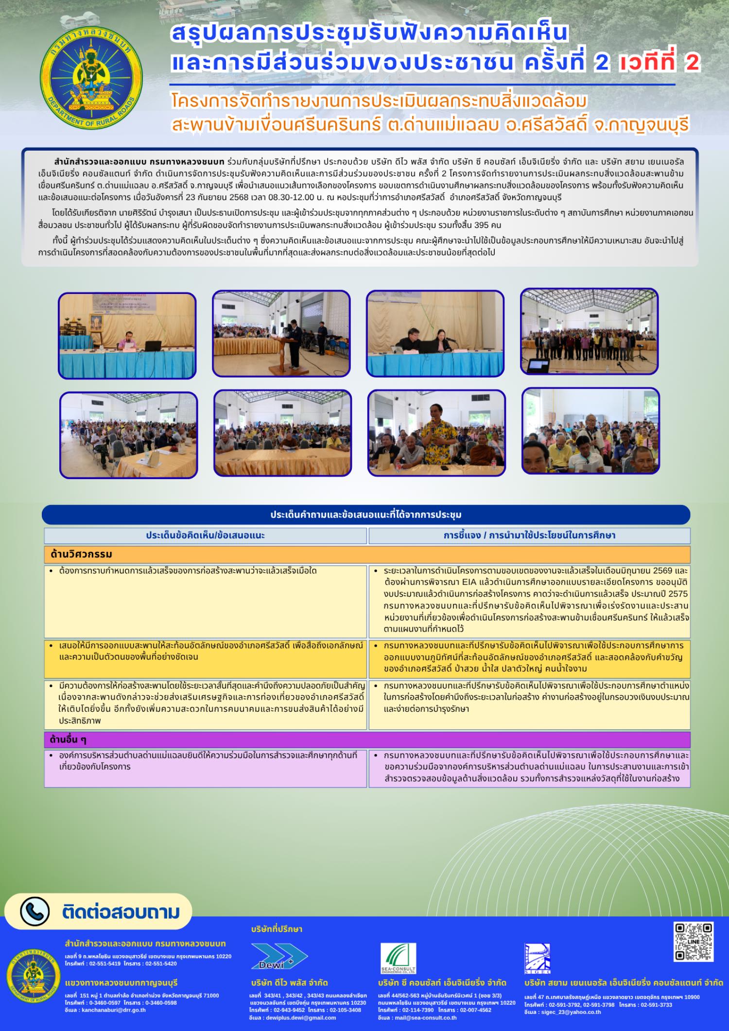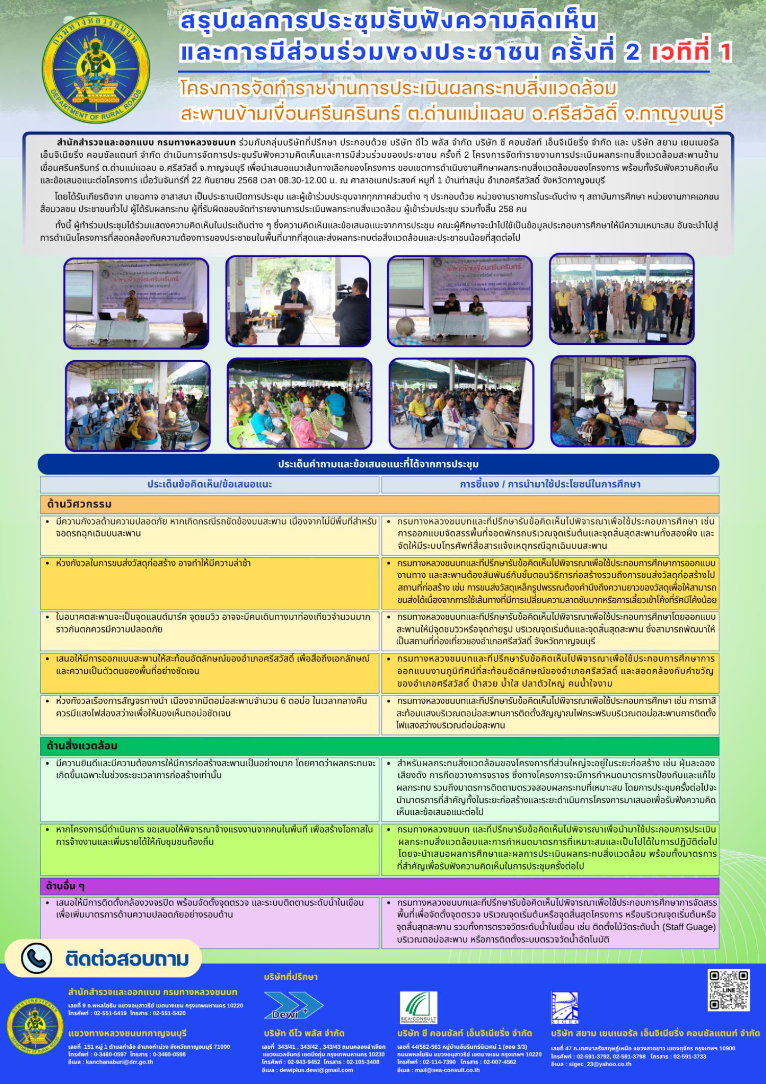 โครงการจัดกำรายงานการประเมินผลกระกบสิ่งแวดล้อมสะพานข้ามเขื่อนศรีนครินทร์ ต.ด่านแม่แฉลบ อ.ศรีสวัสดิ์ จ.กาญจนบุรี